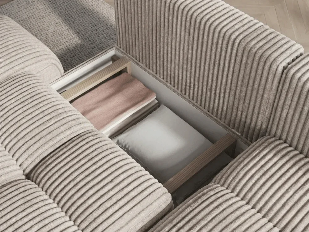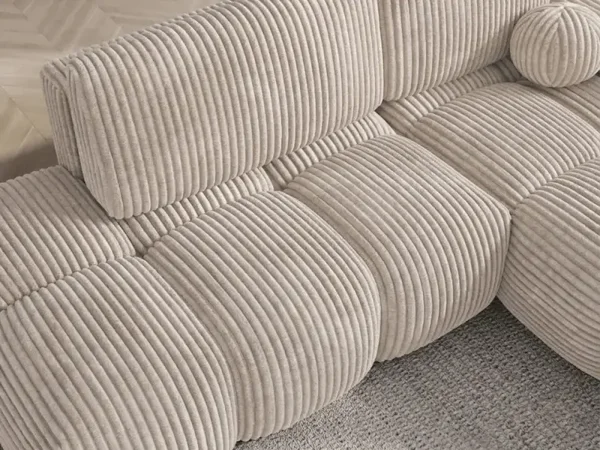 Le tissu Lincoln utilisé pour ce canapé est un velours côtelé haut de gamme au toucher exceptionnellement doux. Avec une composition de 92 % polyester et 8 % nylon, il offre un parfait équilibre entre confort et résistance. Son poids élevé (380 g/m²) et sa résistance à l’abrasion testée jusqu’à 100 000 cycles Martindale en font un tissu parfaitement adapté à un usage intensif, y compris en famille avec enfants ou animaux.