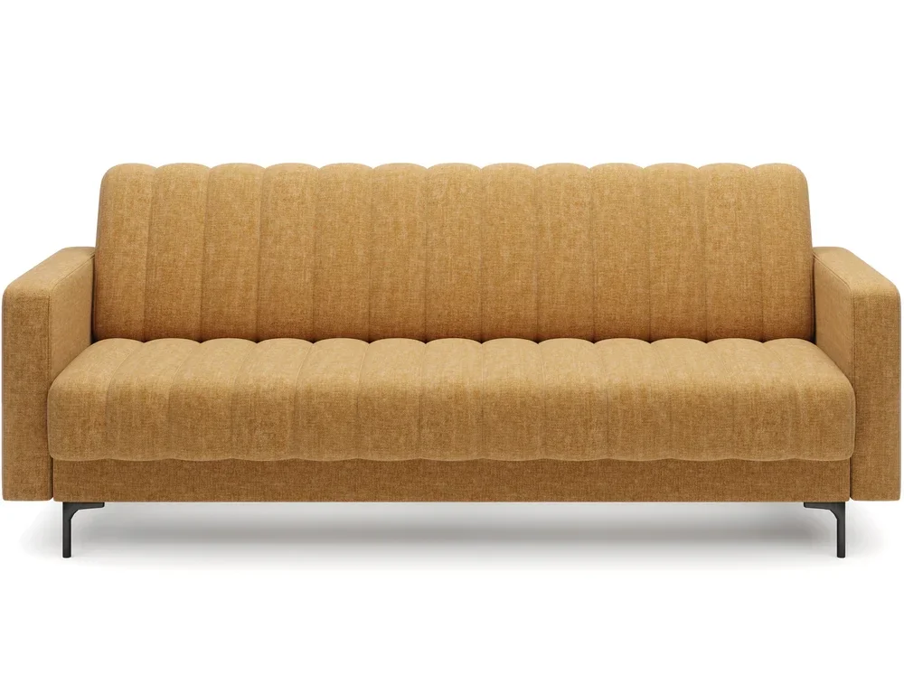 Canapé droit 3 places convertible avec système Click-Clack, structure en bois massif (pin), assise et dossier composés de ressorts ondulés type B et de mousse polyuréthane T2540 assurant confort, maintien et durabilité, capacité de charge maximale 180 kg, couchage intégré 108 × 186 cm, coffre de rangement sous l’assise avec dimensions 68 × 170 × 12 cm, pieds noirs en plastique d’une hauteur de 13 cm, canapé autoportant, usage résidentiel, montage partiellement assemblé, assemblage recommandé à 2 adultes, garantie 2 ans, fabrication Europe (Pologne).