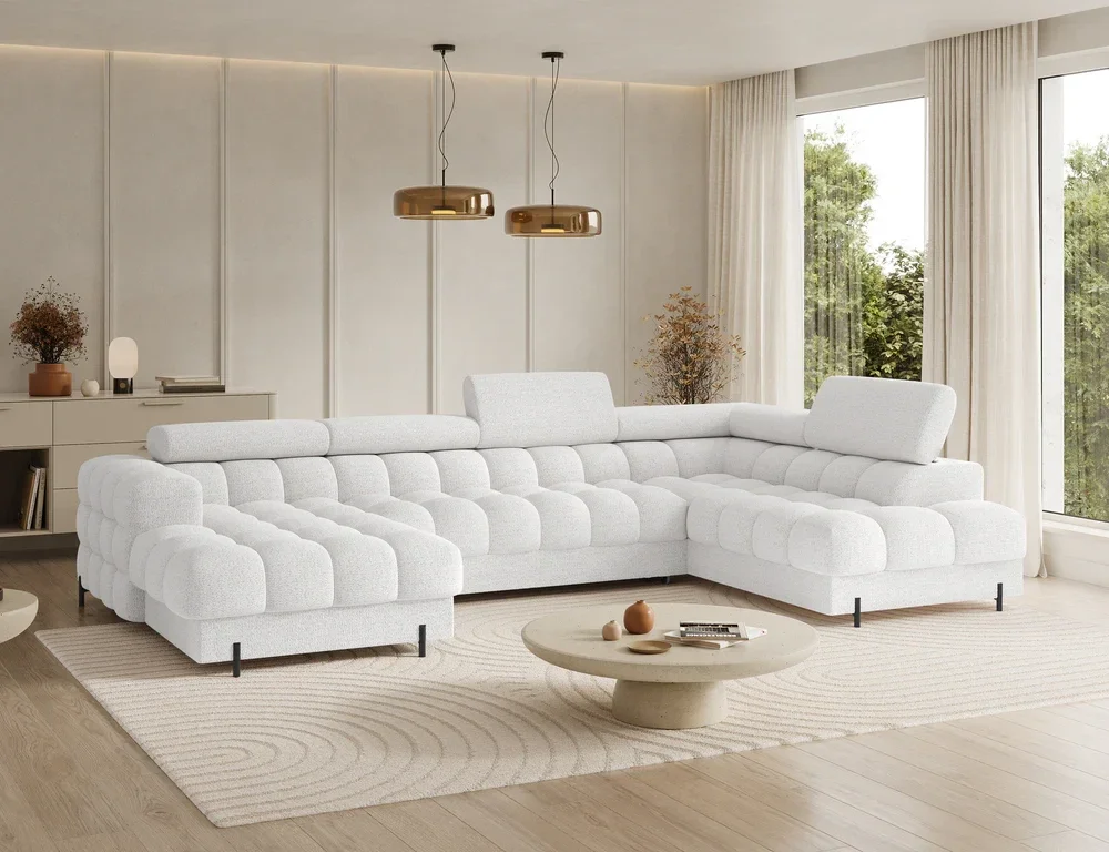 Montceau – Canapé panoramique en U convertible avec coffre et têtières réglables