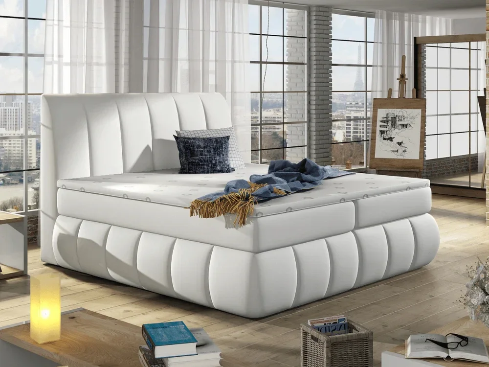 Offrez-vous un sommeil de rêve avec le lit boxspring Matteo, conçu pour allier confort et durabilité. Doté d'un matelas à ressorts Bonnell de 20 cm, renforcé par des couches de mousse T25 des deux côtés, Matteo garantit une expérience de repos douce et résiliente. Le surmatelas de 4 cm, enveloppé dans une housse élégante, complète l'ensemble pour une sensation moelleuse et un soutien optimal. Cette configuration premium évite les déformations liées à l’usage prolongé, vous assurant un confort constant nuit après nuit. Matteo, c’est le luxe d’un repos parfait à portée de main.