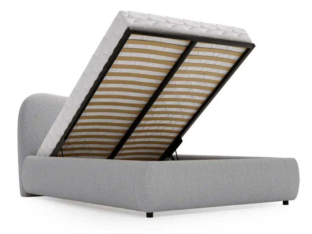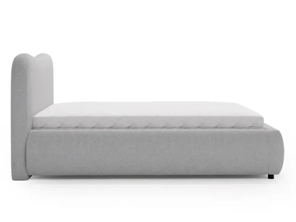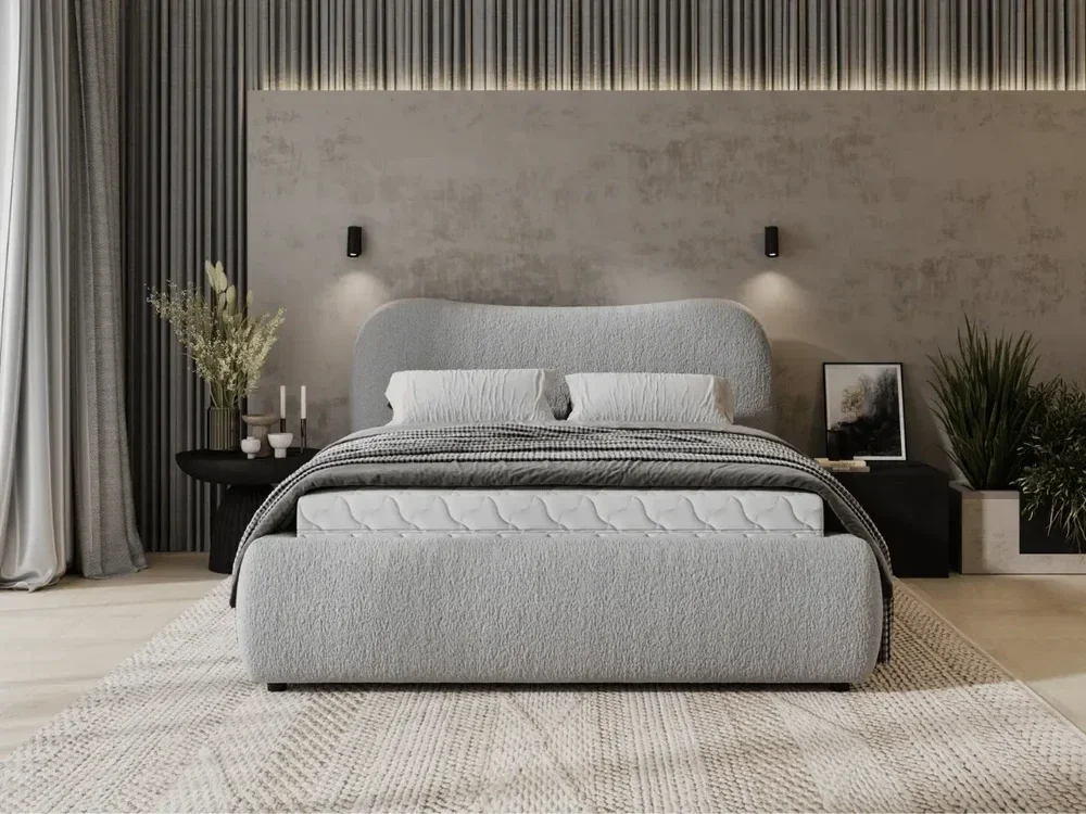 Le lit coffre Ines se distingue par son design innovant, avec une tête de lit épaisse et arrondie, offrant une silhouette douce et accueillante. Ce style est complété par un revêtement en tissu bouclé, un matériau de dernière tendance qui ajoute texture et sophistication à l'ensemble. L'épaisseur et la forme arrondie de la tête de lit ne se contentent pas de souligner l'esthétique moderne du lit, mais assurent également un confort et un support supérieurs, faisant du lit Inès une pièce centrale parfaite pour toute chambre cherchant à allier luxe et modernité.