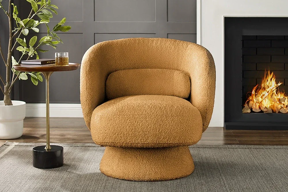 Fauteuil design pivotant BOSSA NOVA 80cm jaune moutarde Bouclé