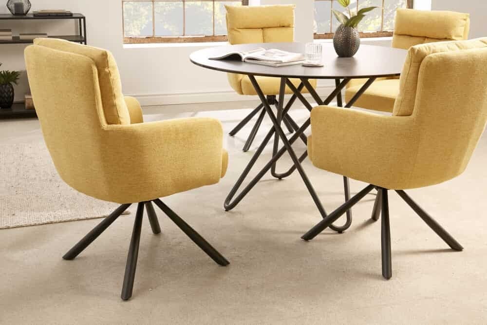 Lot de 2x chaises pivotante rétro BIG GEORGE jaune moutarde avec accoudoirs et rembourrage à ressorts Bonnell